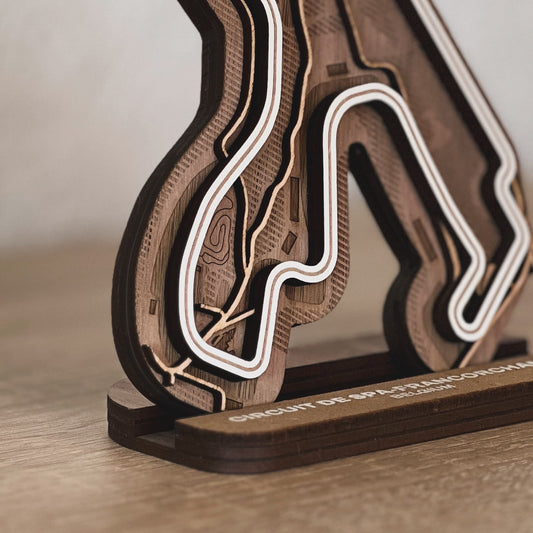 Choose your favorite racetrack of the most famous F1, MotoGP, and other racing circuits and get it straight into your living room as wooden 3d layered statue or hang it on your wall.