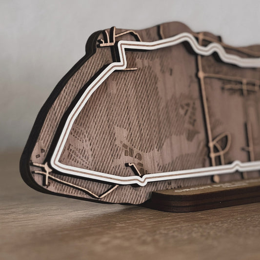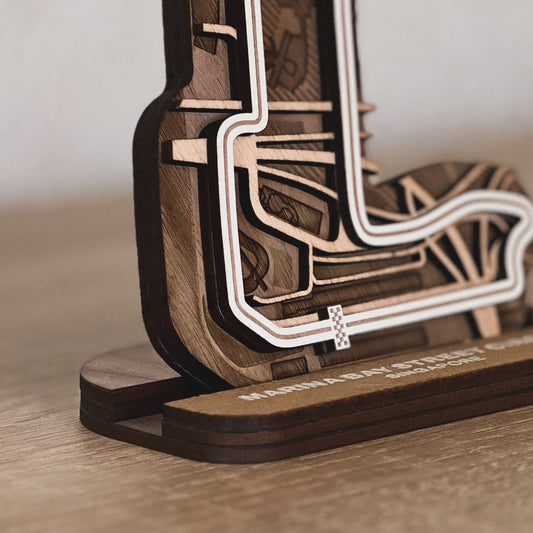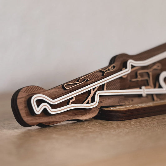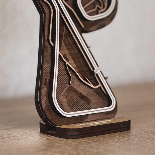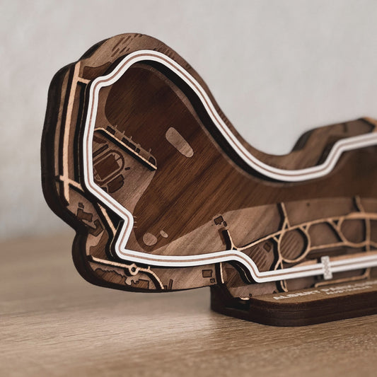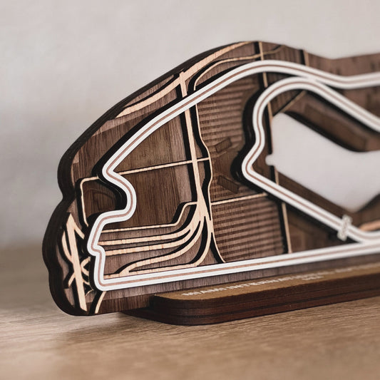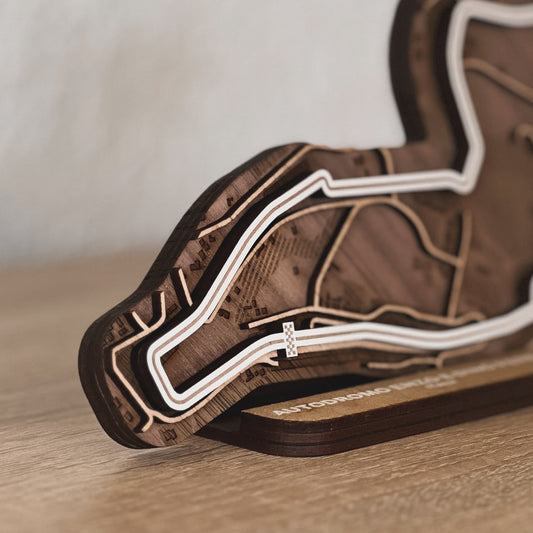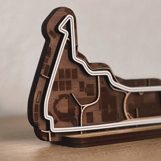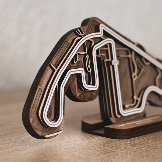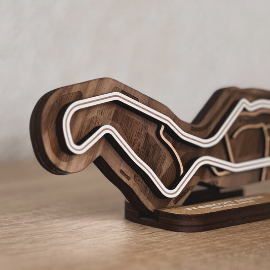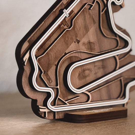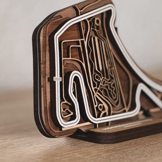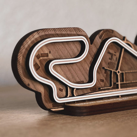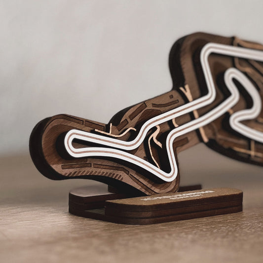 Discover our full range of 3D wooden racetracks for your desk or as wall art. From Formula 1 circuits to beloved MotoGP tracks and other famous racing circuits.